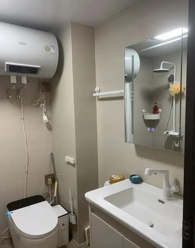 卫生间的空间虽然不大,但为了满足需求,还是选择了安装智能马桶。智能马桶因其科技感强,深受年轻人喜爱,使用起来也颇为方便。